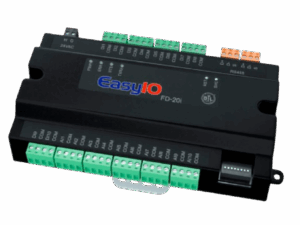 EasyIO FD-20i Input Modbus/Bacnet Module, The FD20i has 20 input points, supports BACnet MSTP or Modbus RTU as a selectable function and is equipped with a RS485 port. The inputs include 10 Digital Inputs (DI) and 10 Universal Inputs (UI) supporting resistance based (10K or 20K) or digital dry contact.